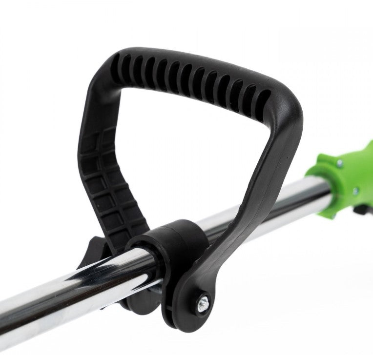 Această motocoasă este fabricată din materiale durabile precum ABS și oțel inoxidabil, asigurând o construcție solidă și rezistență la uzură. Cu o tijă extensibilă, puteți ajusta înălțimea de la 90 cm la 120 cm, oferindu-vă confort și flexibilitate în timpul utilizării.