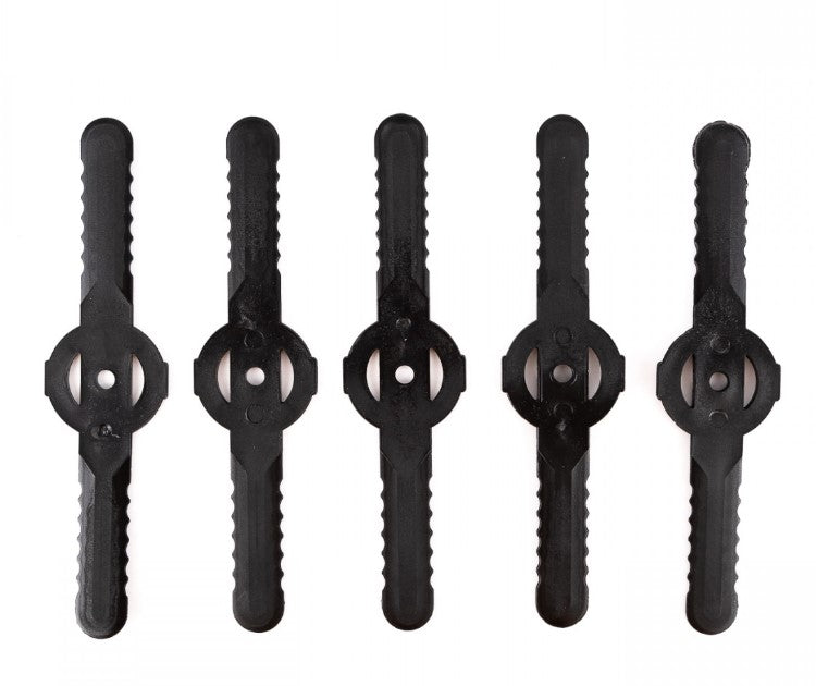 Setul include o varietate de accesorii utile, cum ar fi suportul cu roți pentru o manevrare ușoară și confortabilă, 7 lame (2 lame drepte metalice și 5 lame drepte din plastic) pentru a vă oferi opțiuni de tăiere variate, un acumulator de 12V pentru a vă asigura că aveți mereu energie suficientă, un încărcător pentru a menține acumulatorul încărcat, o grilă de protecție și o cheie de montaj.